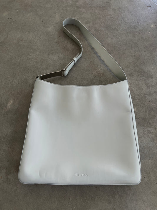 Prada Y2K Minimal Grey Leather Shoulder Bag