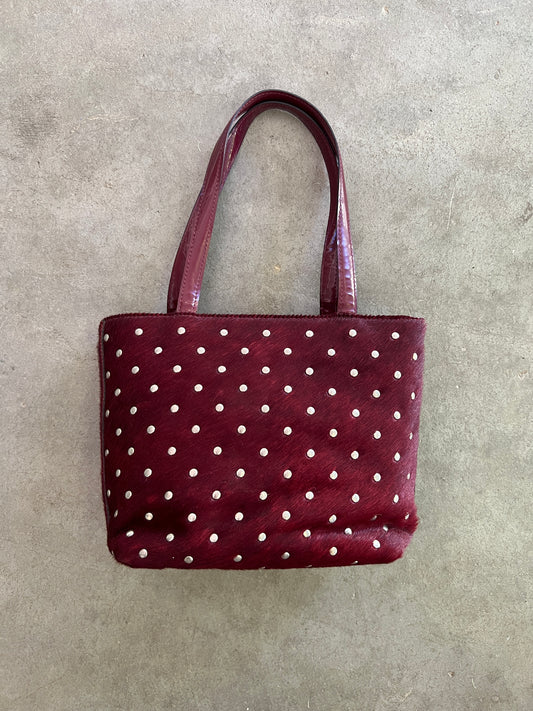 Berge Italy Oxblood Pony Hair Studded Mini Tote