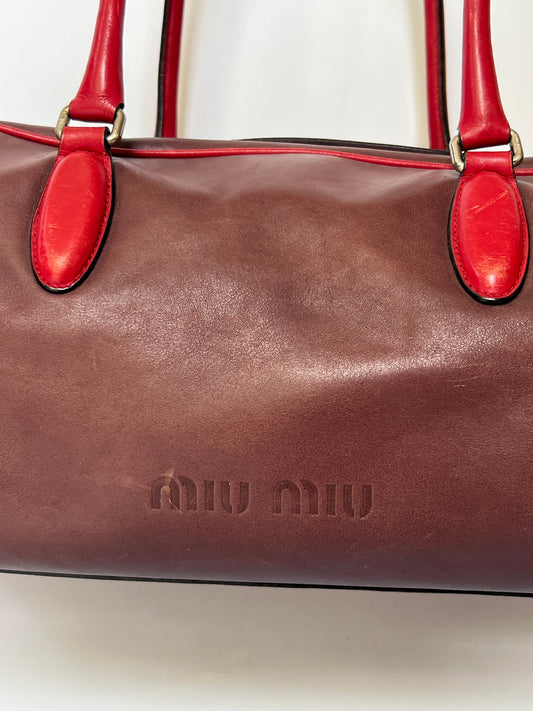 Miu Miu Leather Shoulder Bag with Red Contrast Handles