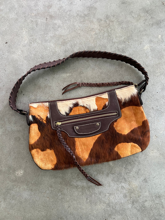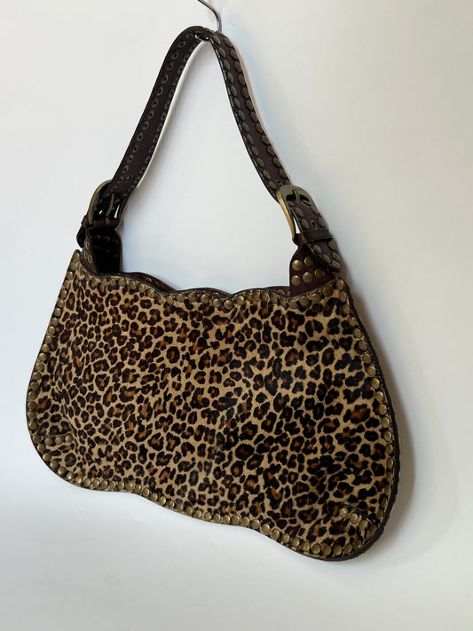 Tango Studded Leopard Pony Hair Shoulder Bag