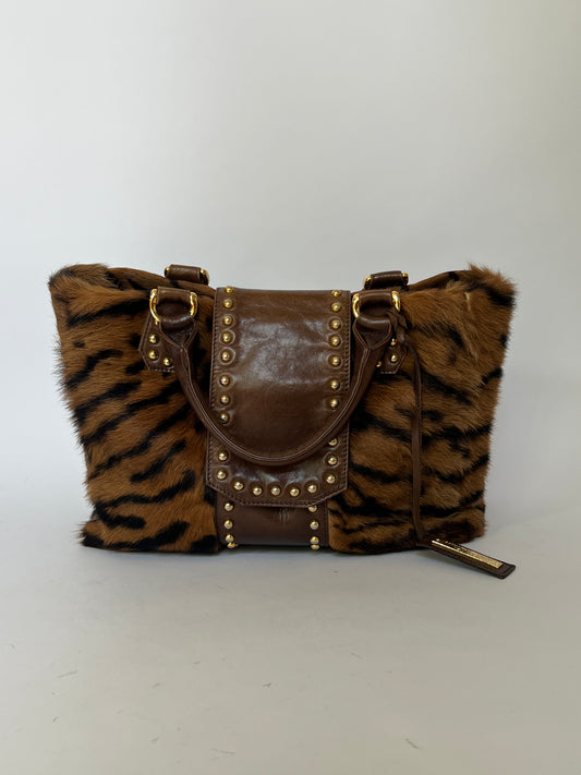 Albericca Tiger Pony Hair Studded Leather Bag