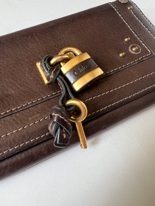 Chloé Paddington Choc Brown Leather Wallet with Padlock