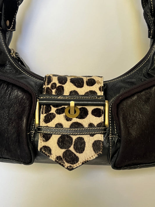 Vintage Leopard Calf Hair & Leather Multi-Pocket Shoulder Bag