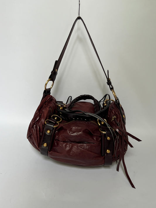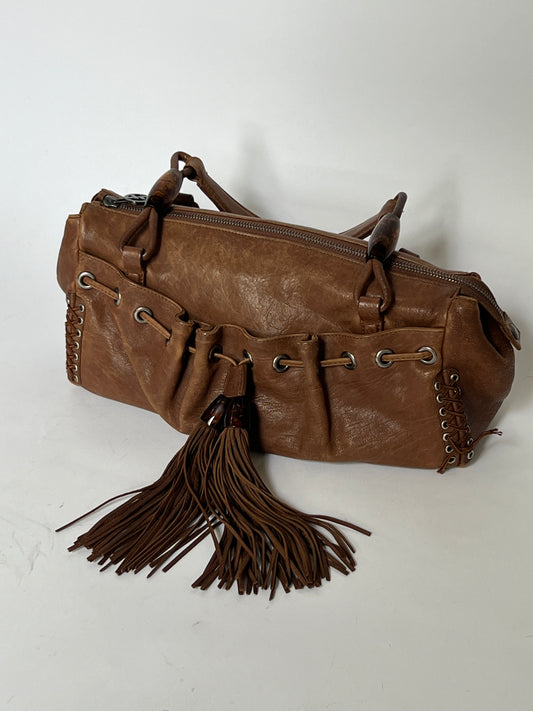 Giorgio Armani Leather Tassel Shoulder Bag with Beaded & Corset Detailing