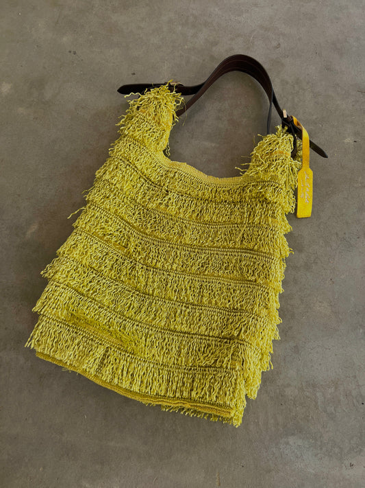Italian Chartreuse Straw Fringe Bag — Leather Handle