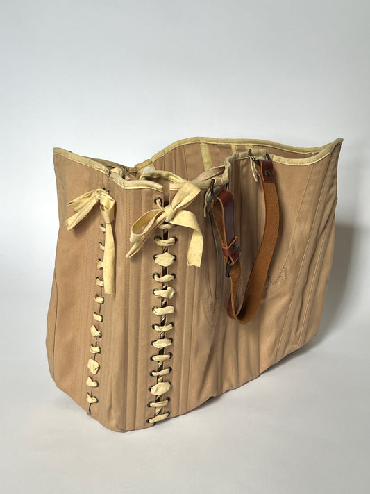 Corseted Fabric Tote with Boning and Leather Straps