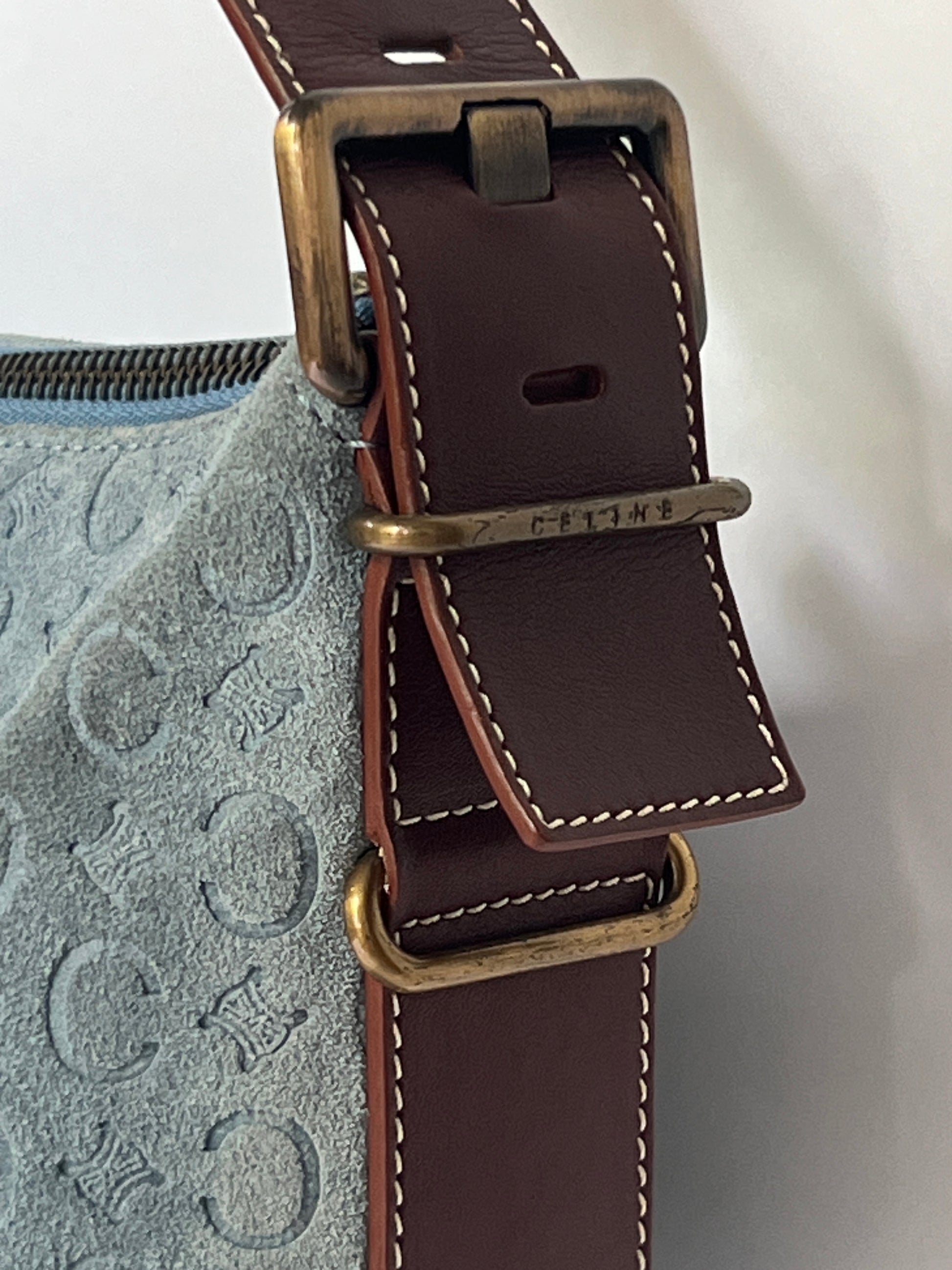 — Blue suede exterior with embossed Céline logo motif