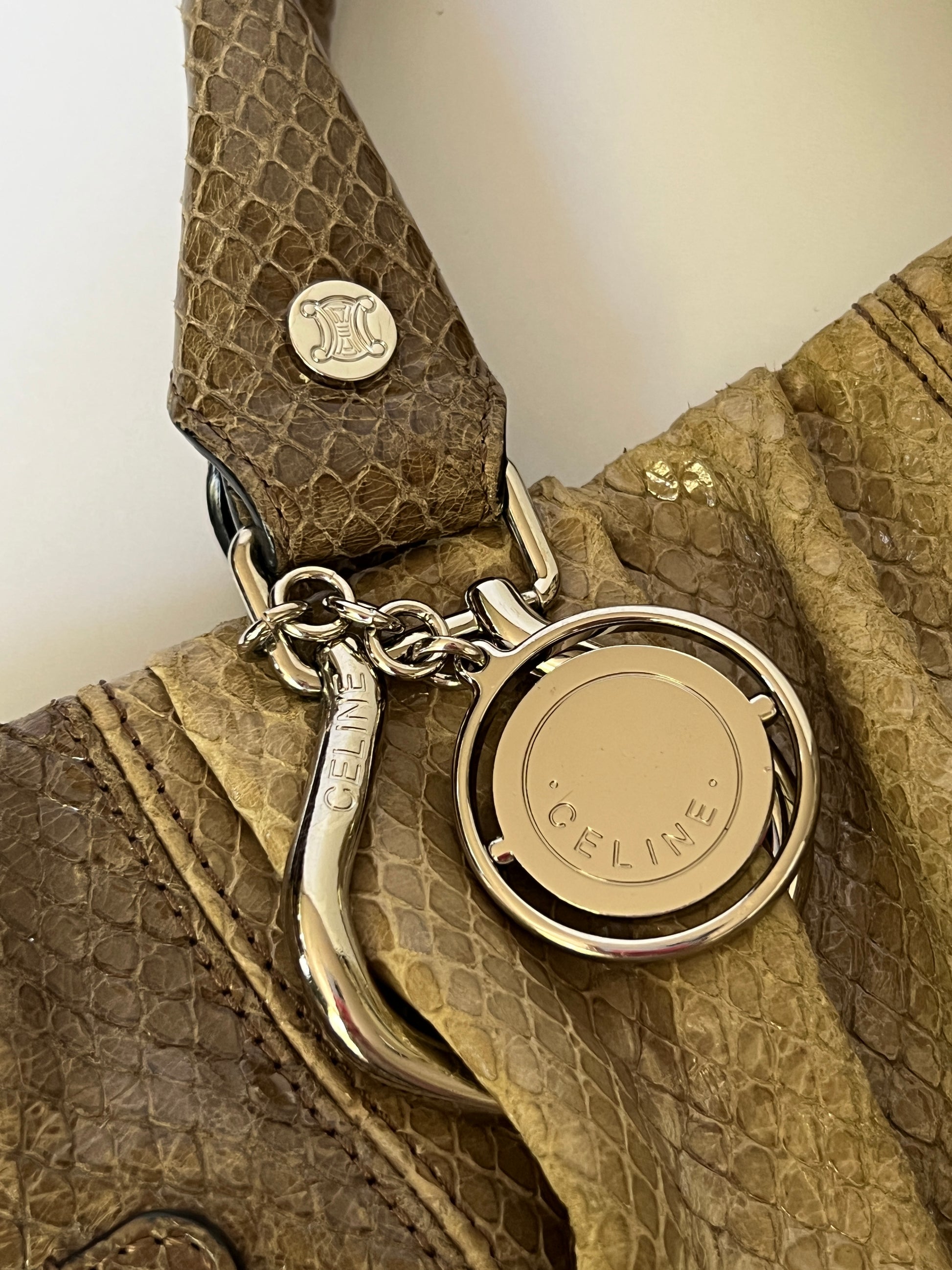Celine Python-Embossed High Gloss Hobo Bag