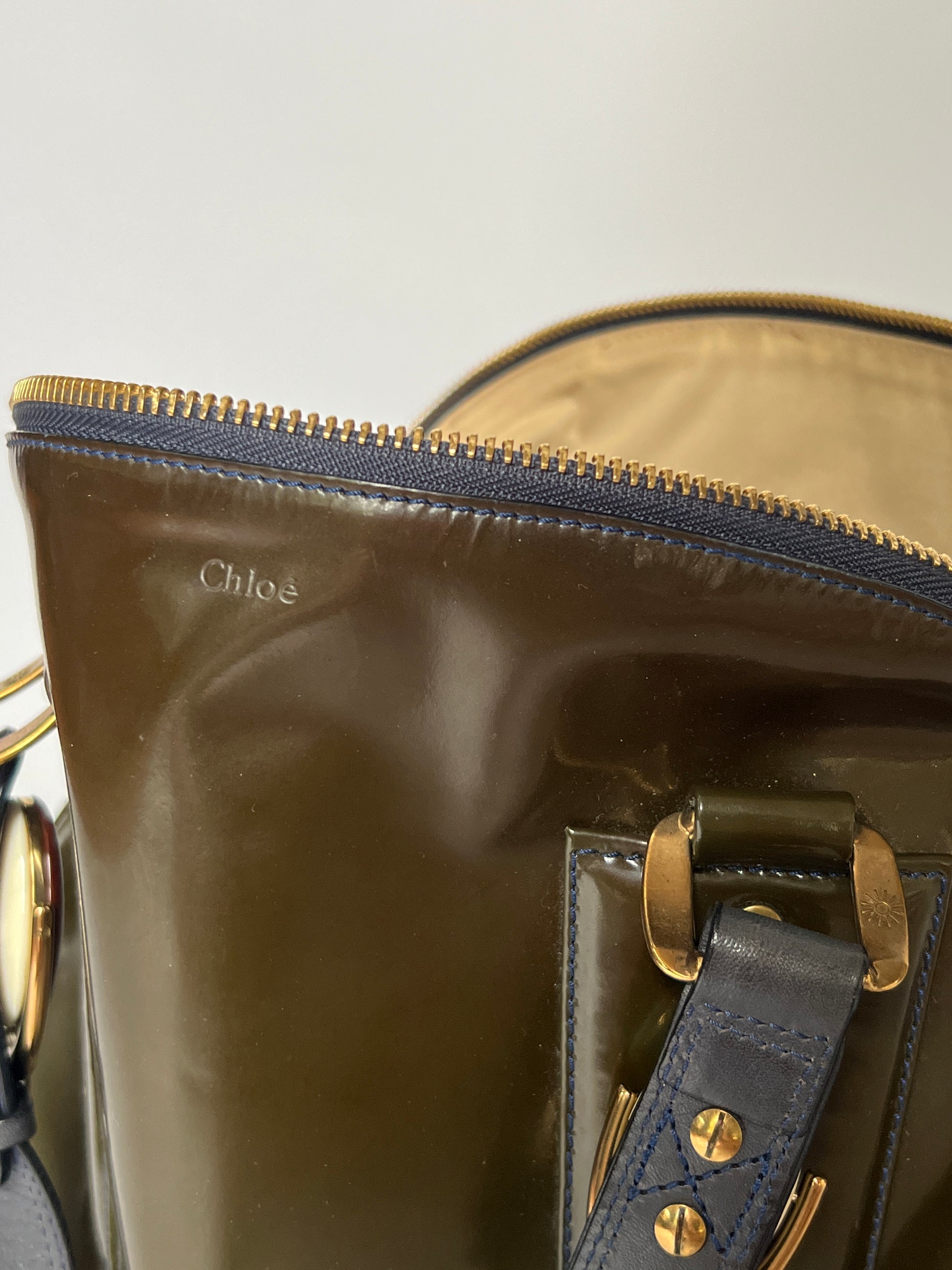 Chloé Patent Leather Gem Hardware Bag – Olive