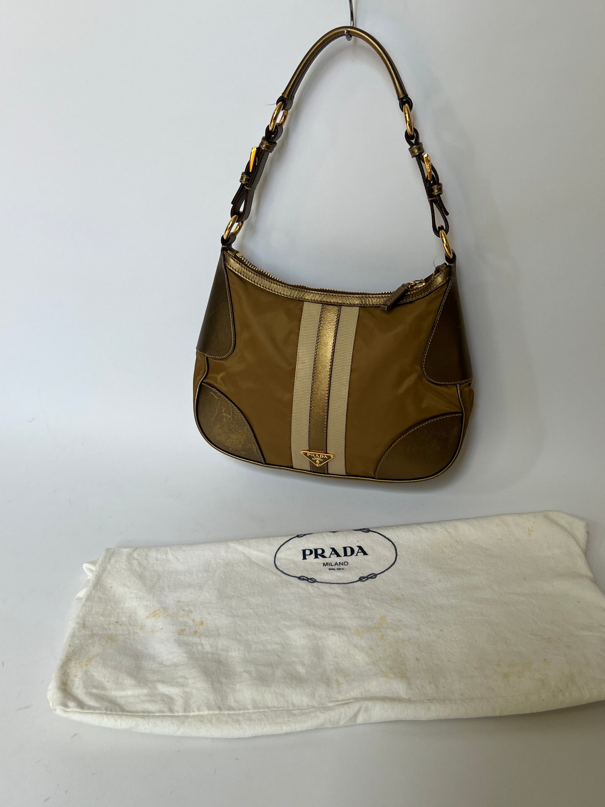 Prada Tessuto Sport Gold Stripe Shoulder Bag – Early 2000s