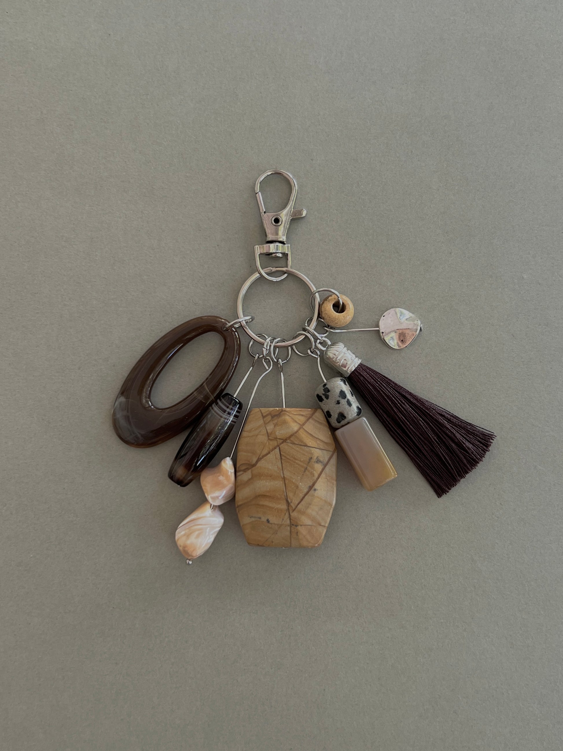Acrylic, Jasper, Striped Agate, Shell, Metal, Agate, Dalmatian Jasper, Tassel, Picture Jasper, Stainless Steel.