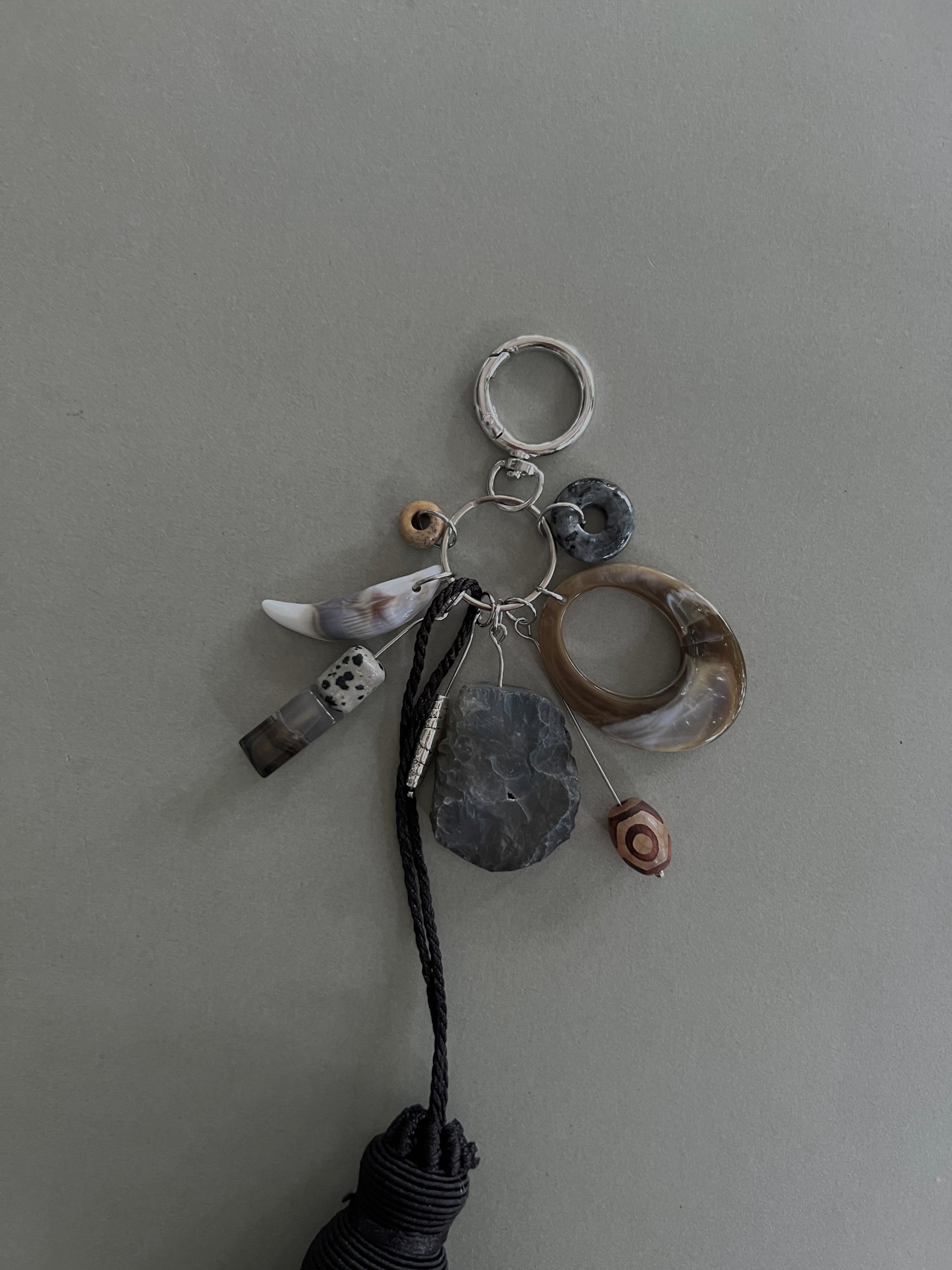 Tassel, Resin, Labradorite, Raw Black Agate, Dalmatian Jasper, Grey Agate, Metal, Acrylic, Picture Jasper, Tibetan Agate, Stainless Steel.