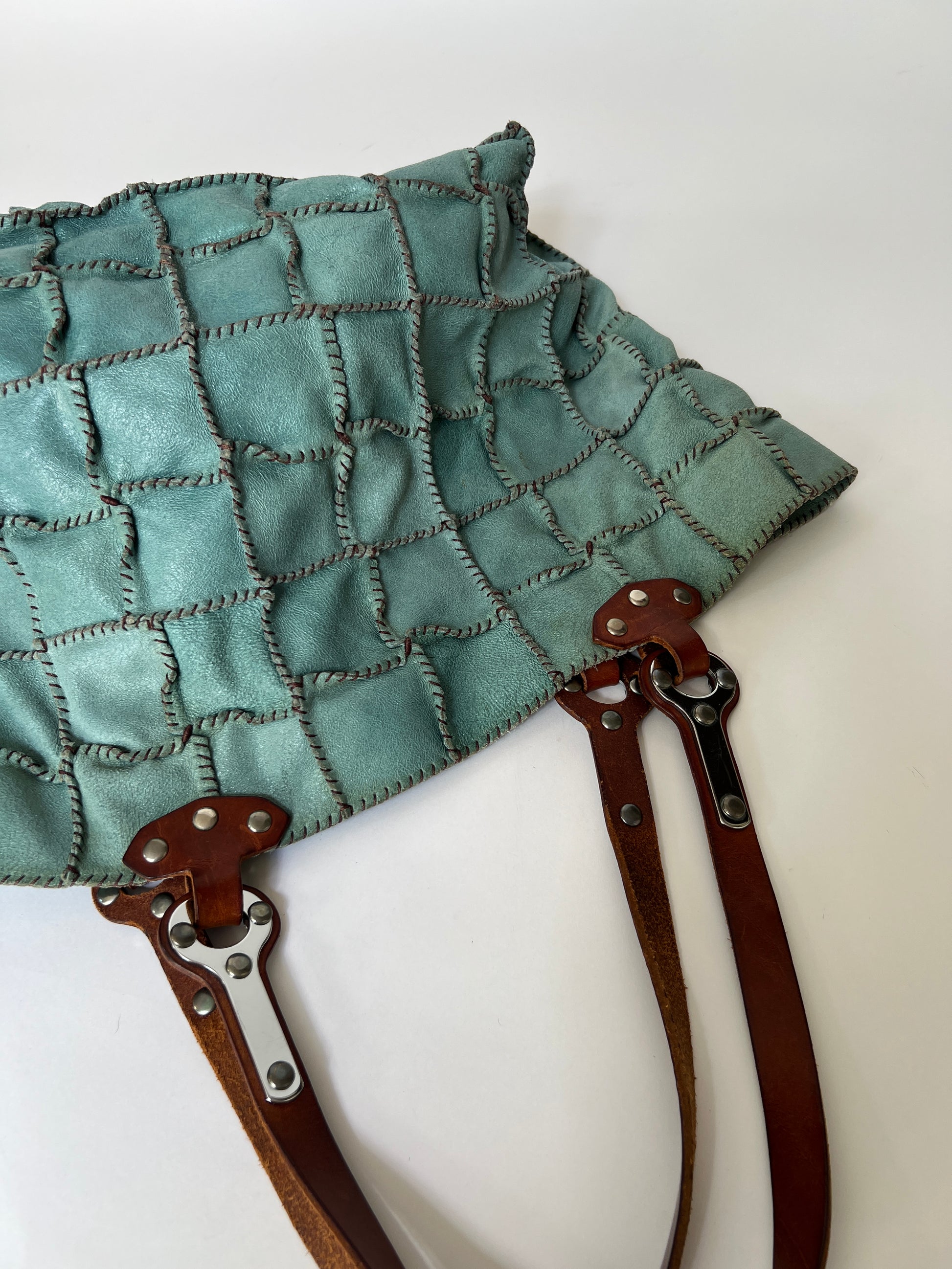 Turquoise Leather Patchwork Tote